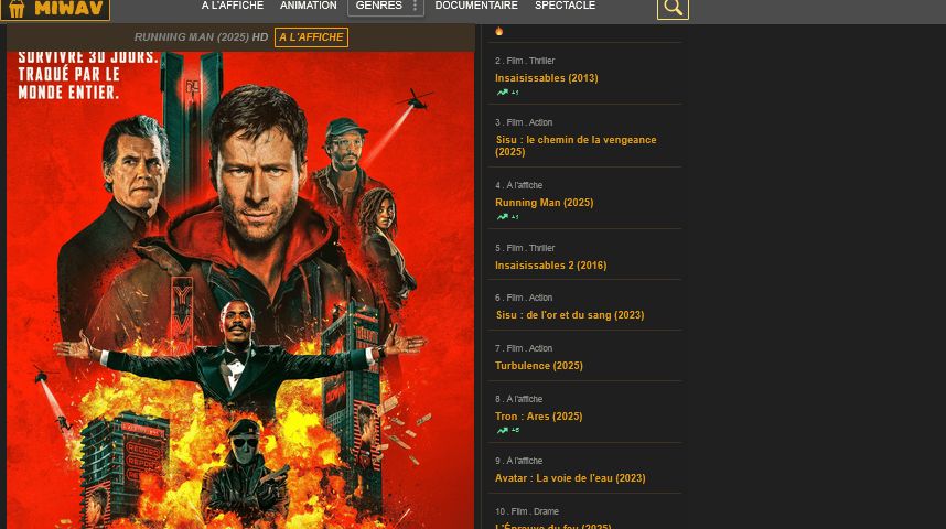 Miwav.com : c’est quoi exactement ? Il s’agit d’un site de streaming gratuit proposant un vaste catalogue de films et séries en français. L’interface permet de visionner du contenu sans inscription obligatoire, ce qui constitue l’un de ses principaux attraits.