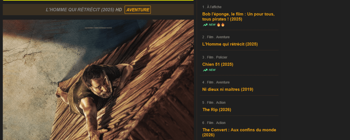 Interface de la nouvelle adresse ovlim montrant le catalogue de films 2026